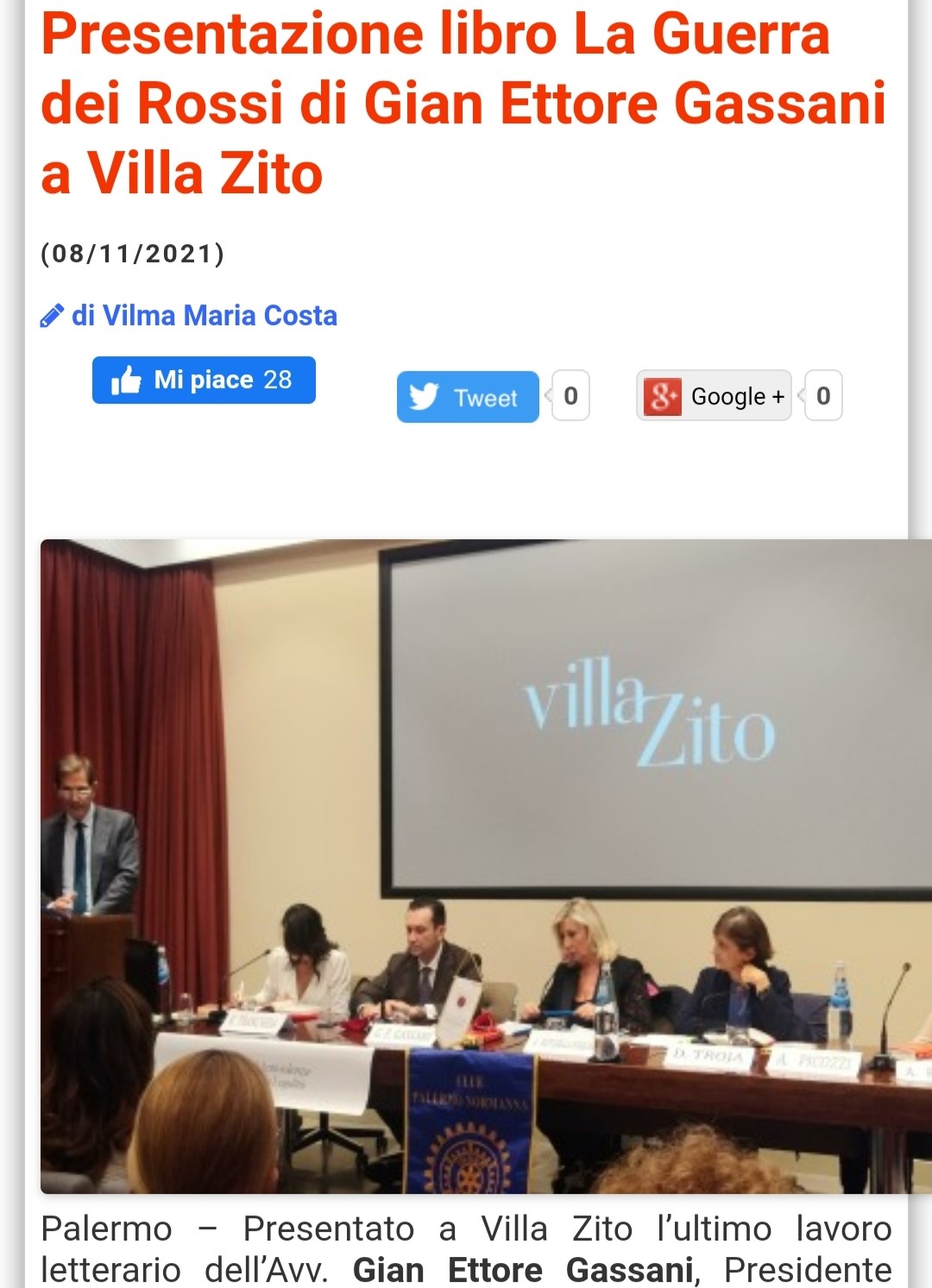 Presentazione libro La Guerra dei Rossi di Gian Ettore Gassani a Villa Zito su Trinacria News.eu