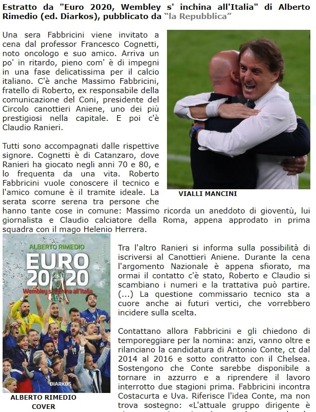 IL RESTO, MANCIO – ALBERTO RIMEDIO (RAI) RIVELA IN UN LIBRO COME SI E’ ARRIVATI ALLA SCELTA DI MANCINI CT su Dagospia