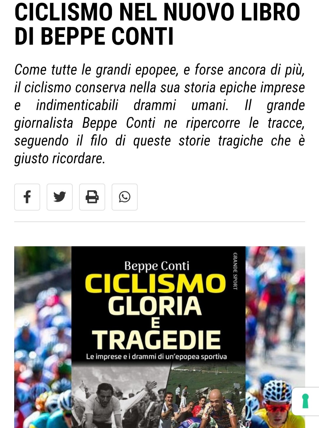 Ciclismo, glorie e tragedie: il nuovo libro di Beppe Conti- Segnalazione in anteprima su Calcio Magazine