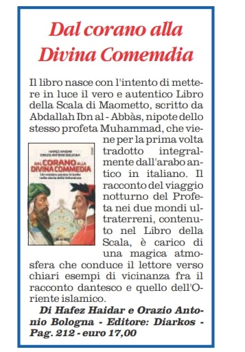 Un libro per il weekend Quotidiano del Sud - L'Altravoce dell'Italia ed. Irpinia consiglia "Dal Corano alla Divina Commedia" di Hafez Haidar e Orazio Antonio Bologna su Il Quotidiano del Sud (ed. Irpinia) del 12/11/21 pag. 16
