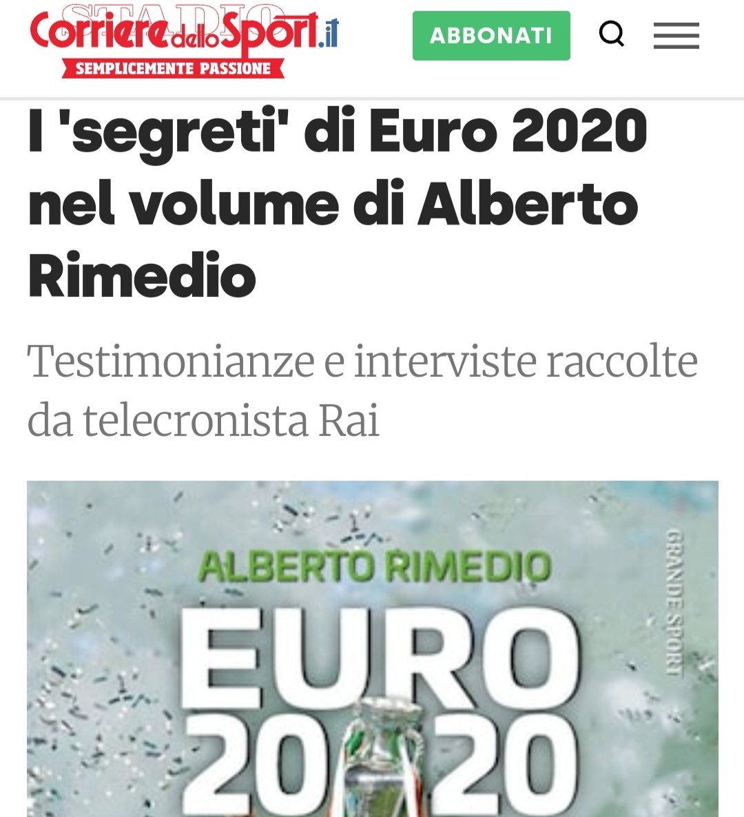I 'segreti' di Euro 2020 nel volume di Alberto Rimedio su Corriere dello Sport