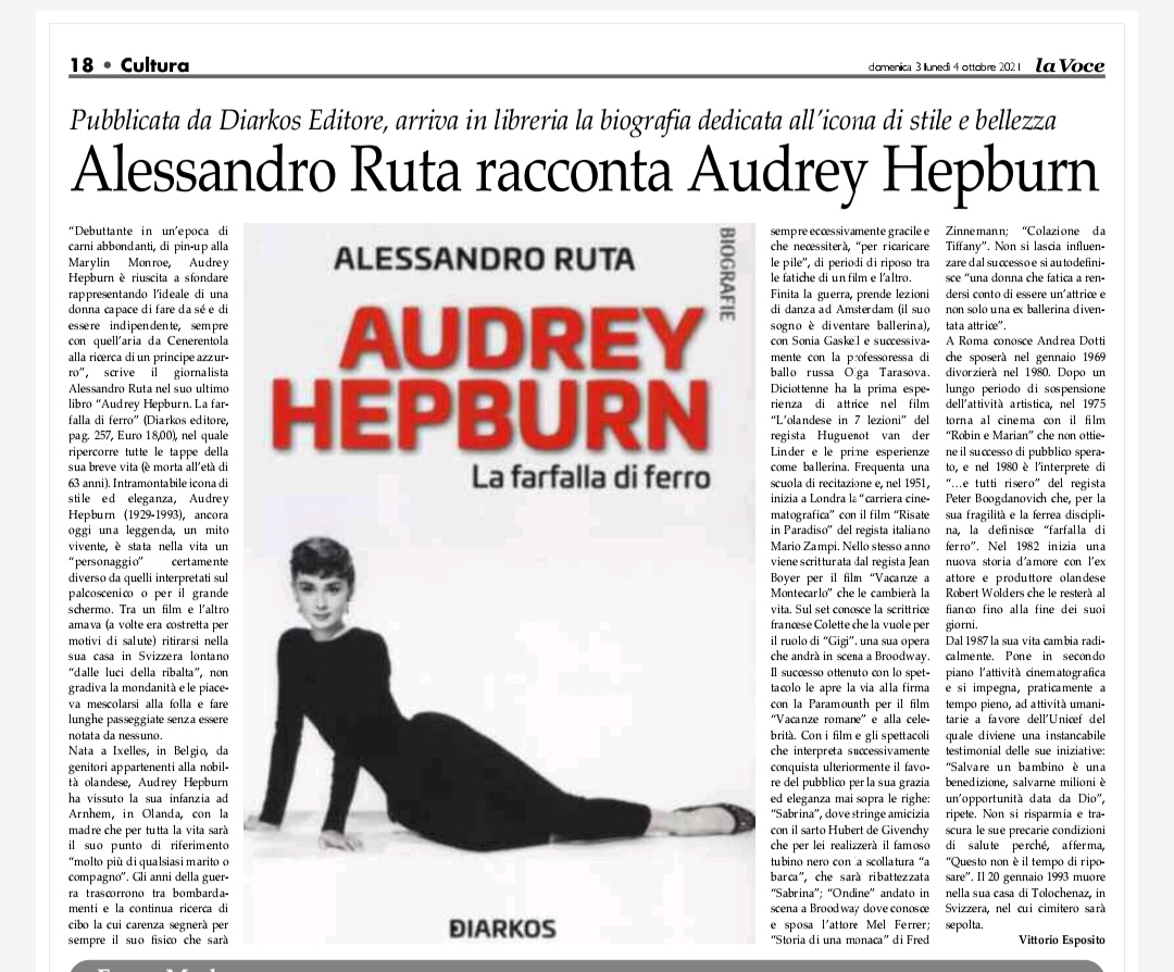 Alessandro Ruta racconta Audrey Hepburn. Recensione sul quotidiano La Voce del 3 ottobre 2021
