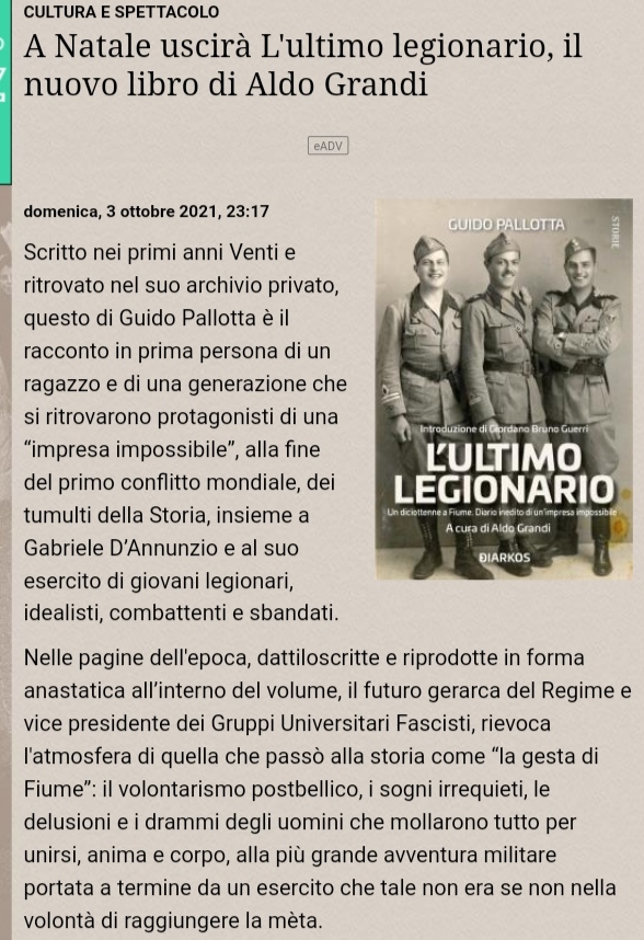 A Natale uscirà L'ultimo legionario, il nuovo libro di Aldo Grandi su La Gazzetta di Lucca