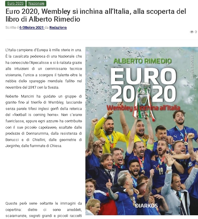 LIBRI IN USCITA "EURO 2020. Wembley si inchina all’Italia" di Alberto Rimedio su Settimana Sport