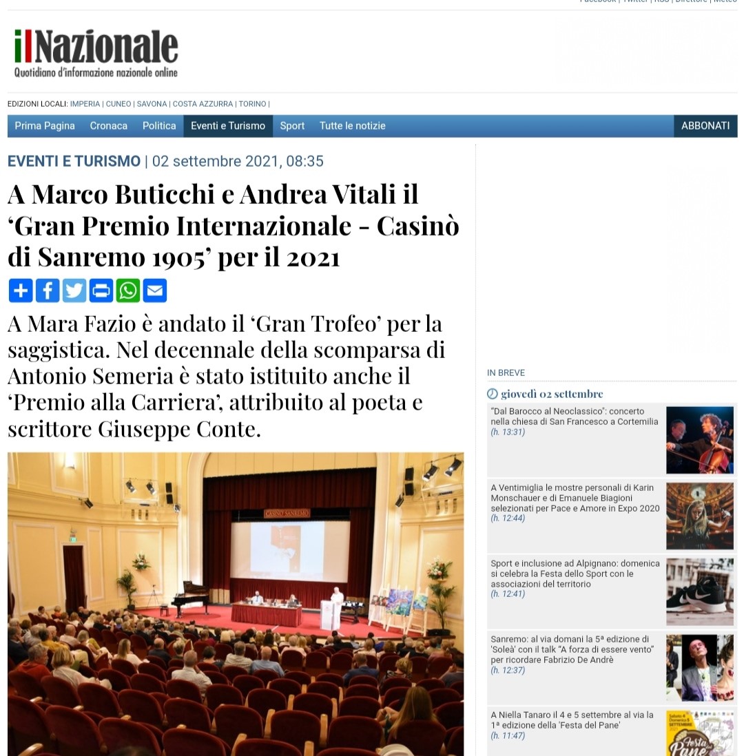 A Marco Buticchi e Andrea Vitali il ‘Gran Premio Internazionale - Casinò di Sanremo 1905’ per il 2021. Premiato anche Domenico Vecchioni. Su Il Nazionale