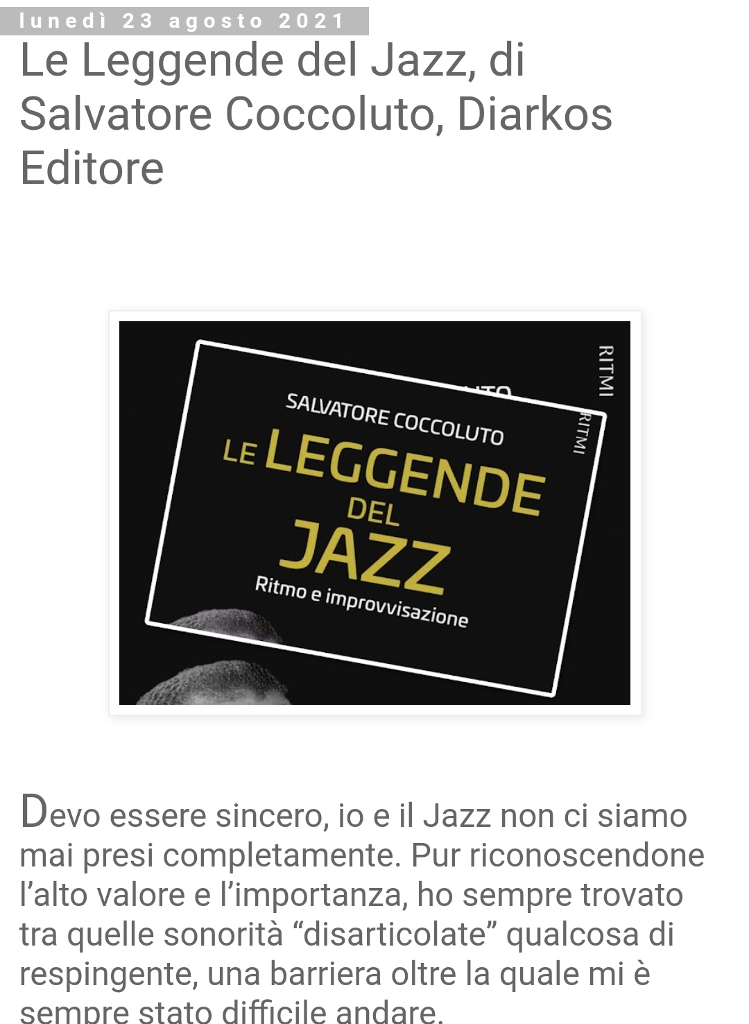 Le Leggende del Jazz, di Salvatore Coccoluto, Diarkos Editore su Queen Forever Blog