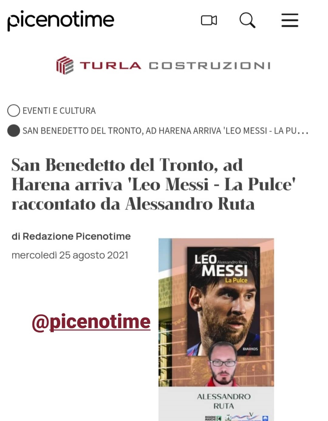 San Benedetto del Tronto, ad Harena arriva 'Leo Messi - La Pulce' raccontato da Alessandro Ruta su Piceno Time