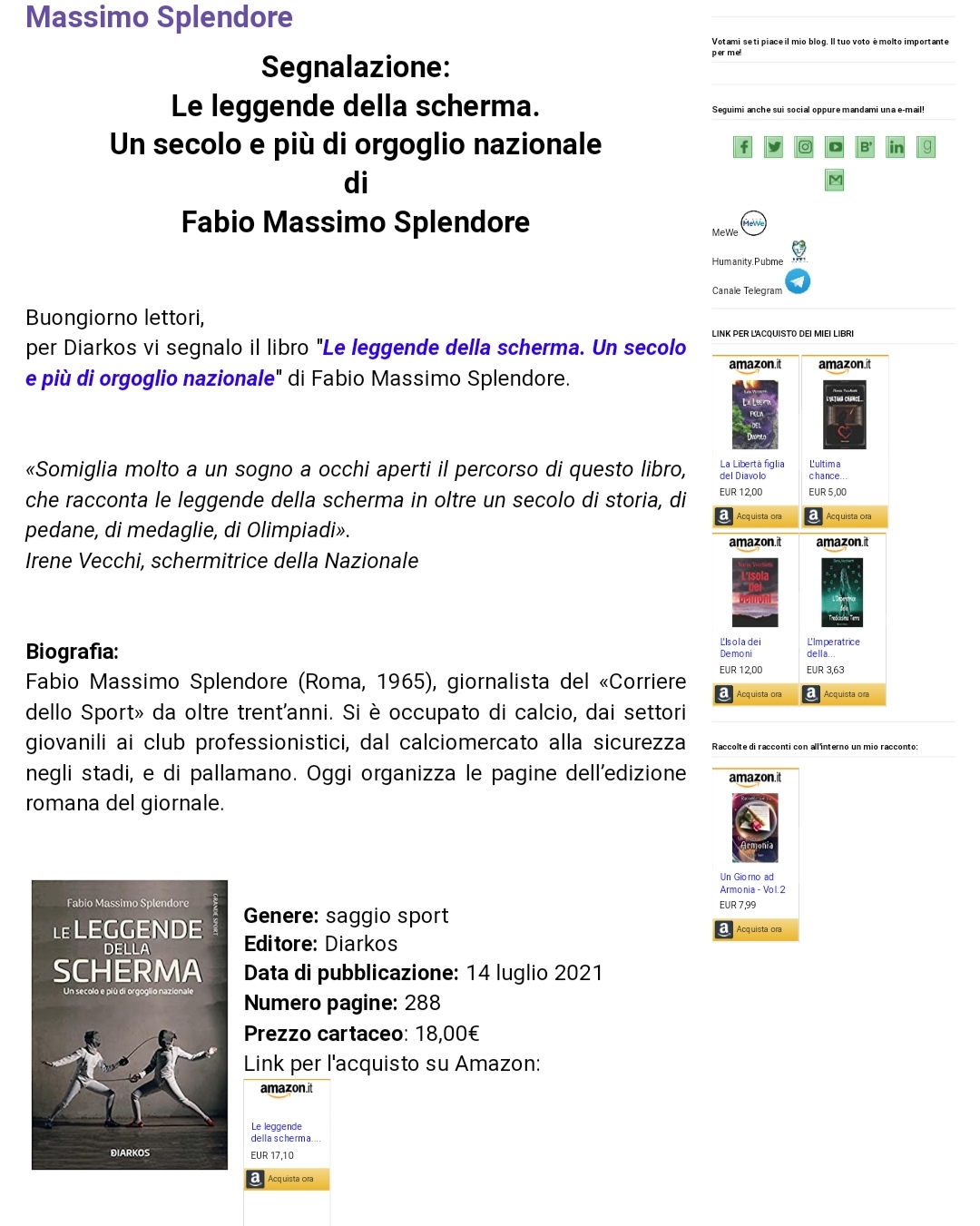 Segnalazione: Le leggende della scherma. Un secolo e più di orgoglio nazionale di Fabio Massimo Splendore
