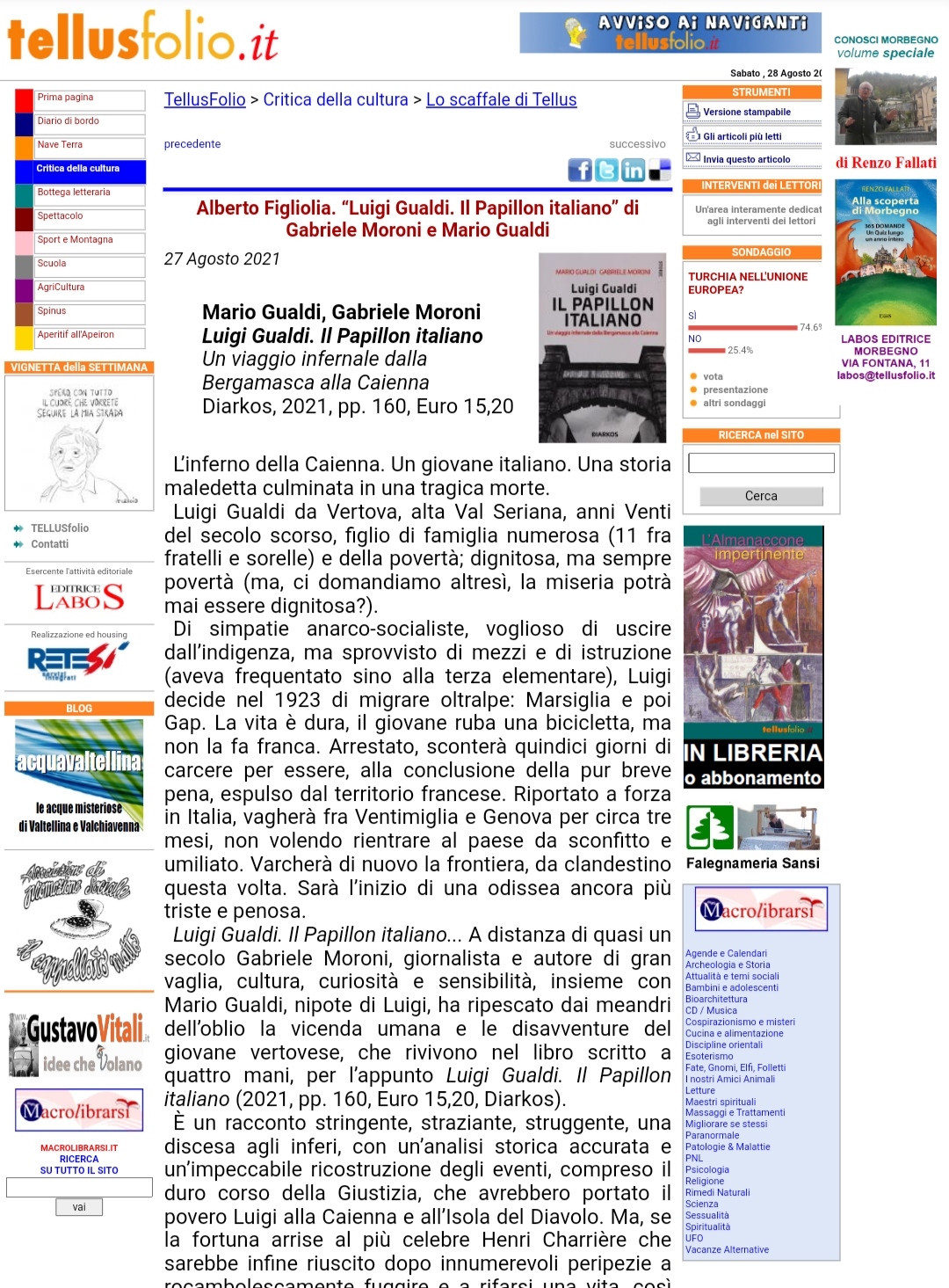 Mario Gualdi, Gabriele Moroni Luigi Gualdi. Il Papillon italiano Un viaggio infernale dalla Bergamasca alla Caienna su TellusFolio.it