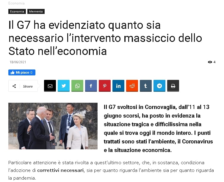 Il G7 ha evidenziato quanto sia necessario l’intervento massiccio dello Stato nell’economia su Lagone