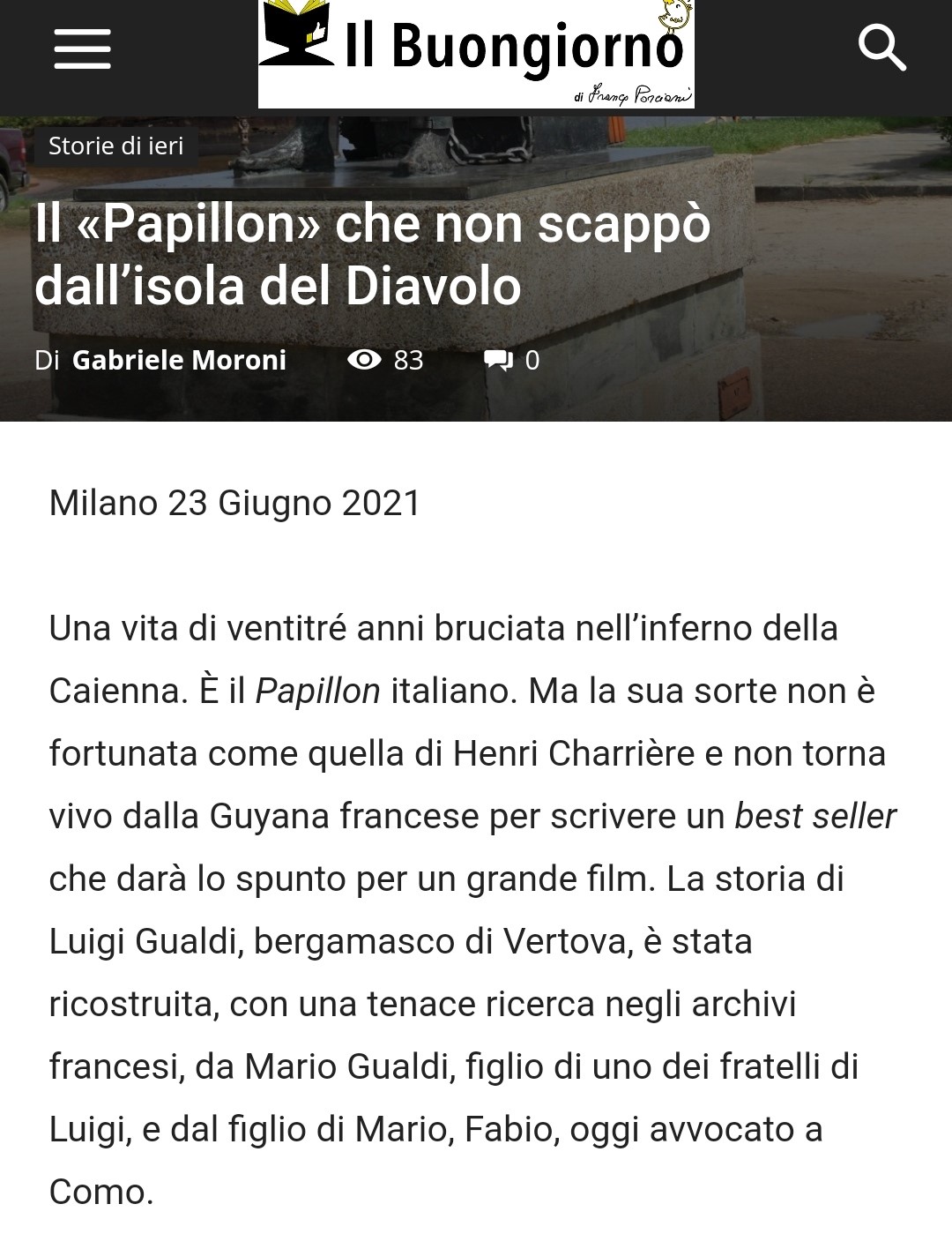Il «Papillon» che non scappò dall’isola del Diavolo su il Buongiorno quotidiano online