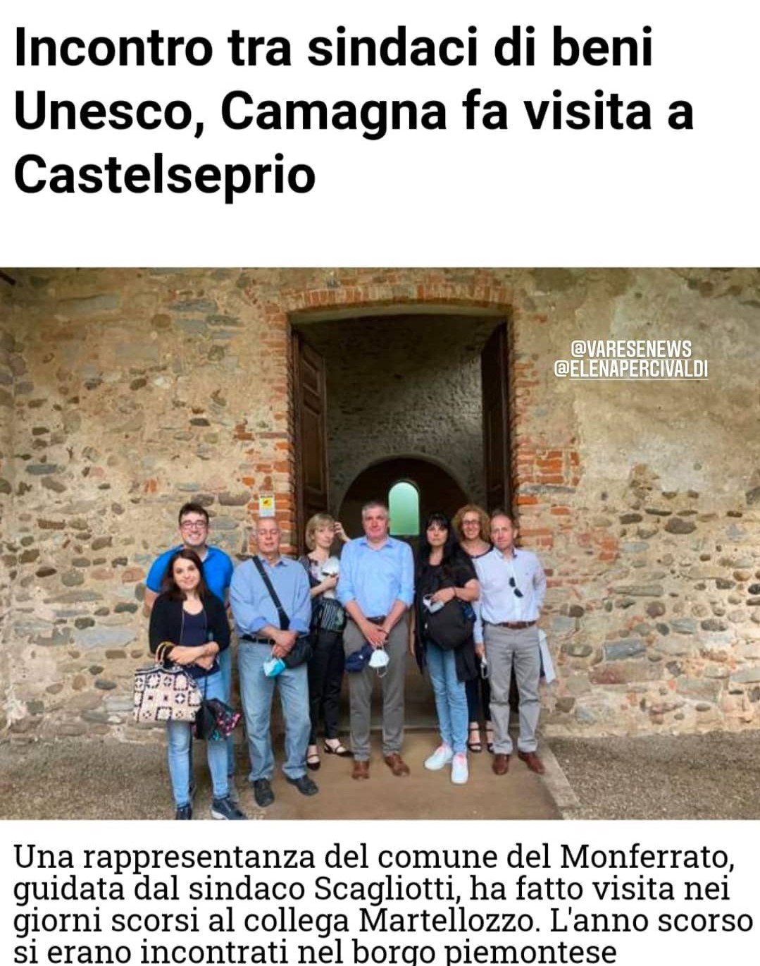 Incontro tra sindaci di beni Unesco, Camagna fa visita a Castelseprio Una rappresentanza del comune del Monferrato, su Varese News