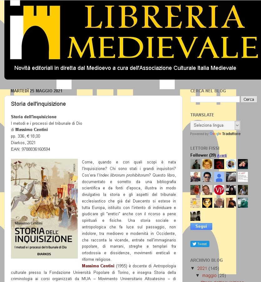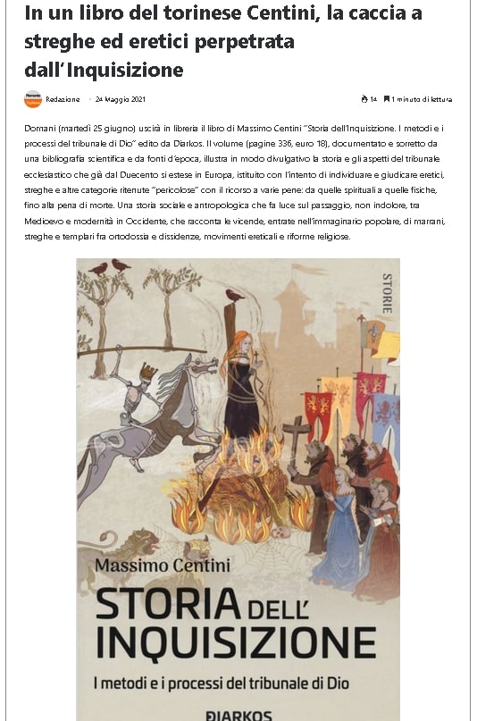 SEGNALAZIONE: "Storia dell'inquisizione" di Massimo Centini segnalato da Paolo Gerolla di Tuttostoria.net
