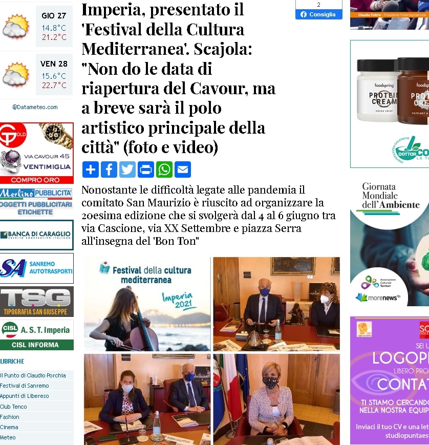 Imperia, presentato il 'Festival della Cultura Mediterranea' su SanRemo News.it