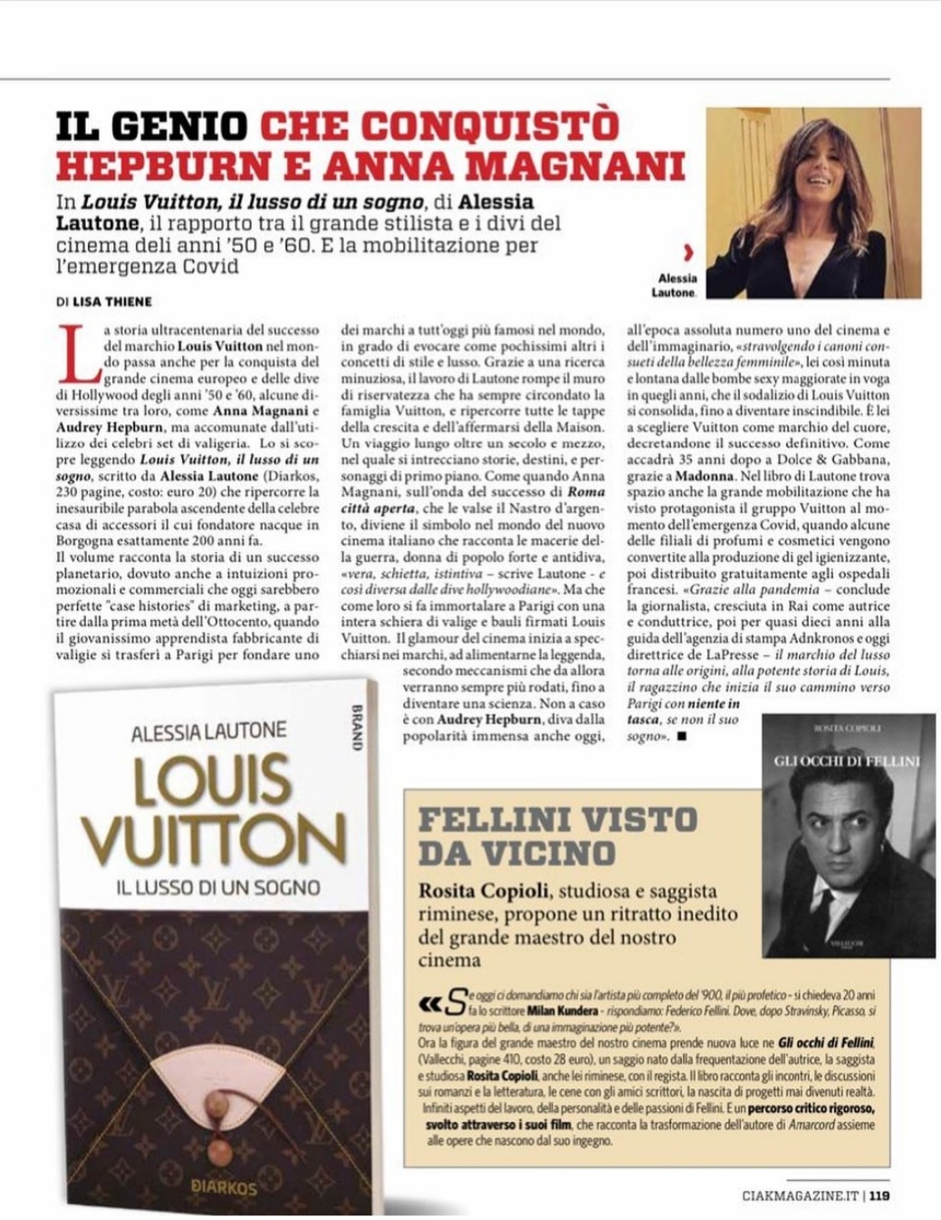 Il Genio che conquistò Hepburn e Anna Magnani. Louis Vuitton di Alessia Lautone su Ciak del 01/06/21 pag. 119