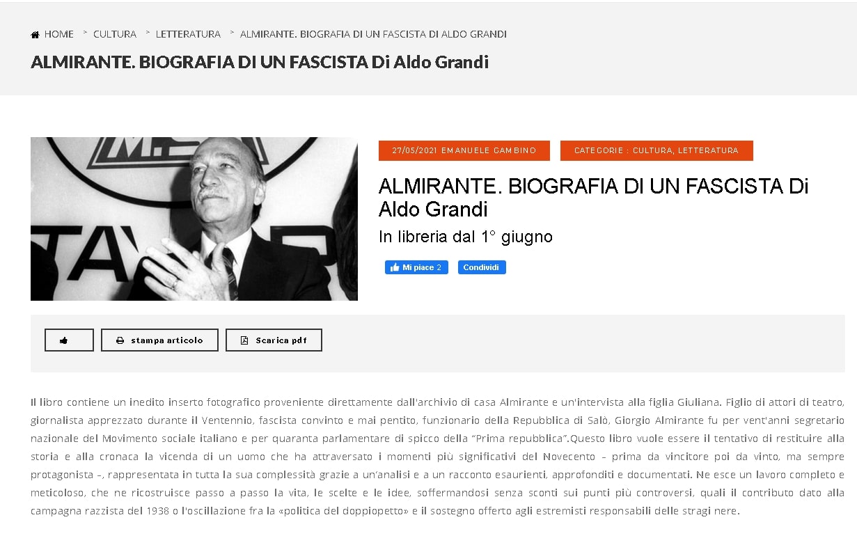 ALMIRANTE. BIOGRAFIA DI UN FASCISTA Di Aldo Grandi su Unfolding Roma
