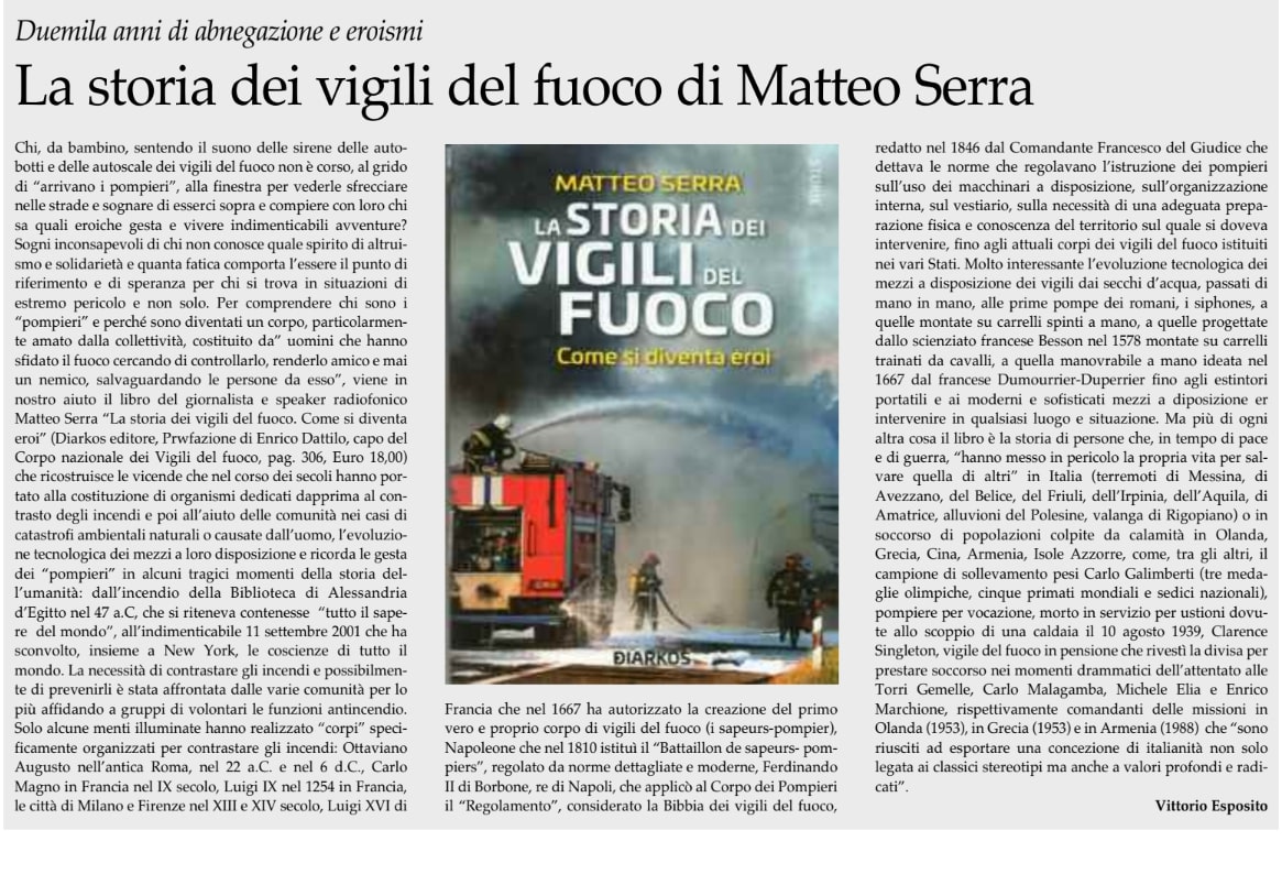 La storia dei vigili del fuoco di Matteo Serra su La Voce pag 18 del 28-5-2021