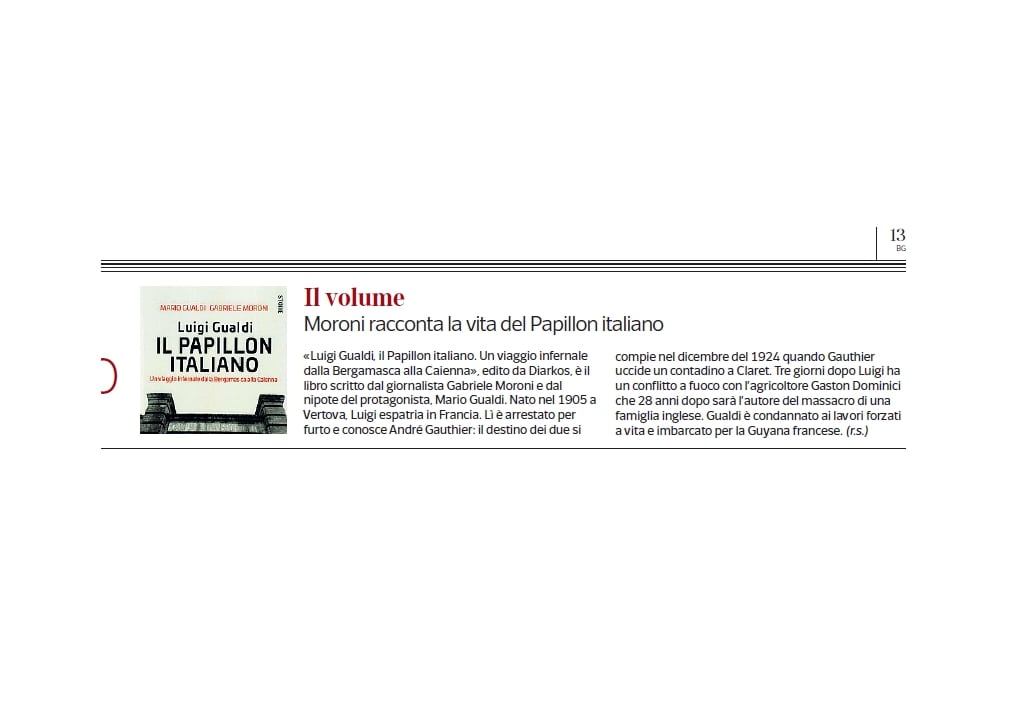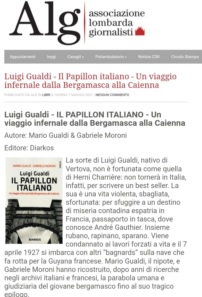 Luigi Gualdi - IL PAPILLON ITALIANO - Un viaggio infernale dalla Bergamasca alla Caienna su ALG- Associazione lombarda giornalisti