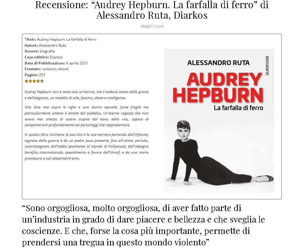 Recensione: “Audrey Hepburn. La farfalla di ferro” di Alessandro Ruta, su La Bottega dei libri