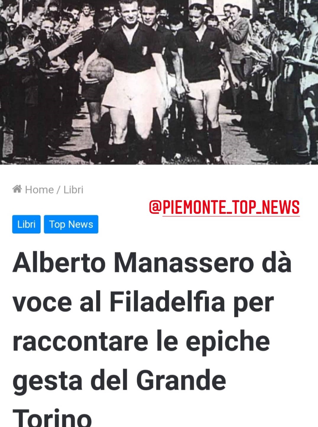 Alberto Manassero dà voce al Filadelfia per raccontare le epiche gesta del Grande Torino su Piemonte Top News