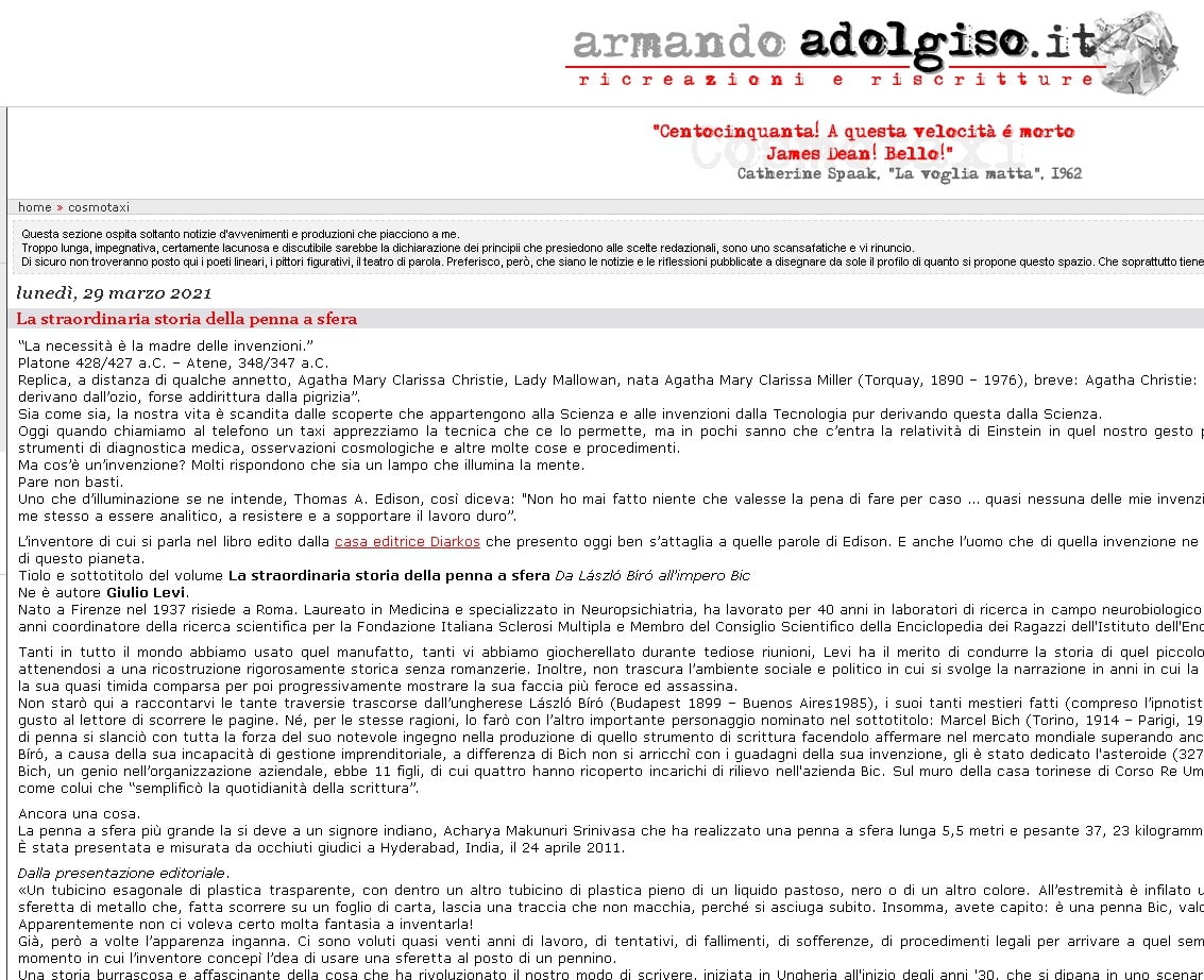 La straordinaria storia della penna a sfera sul blog Armando Adolgiso.it