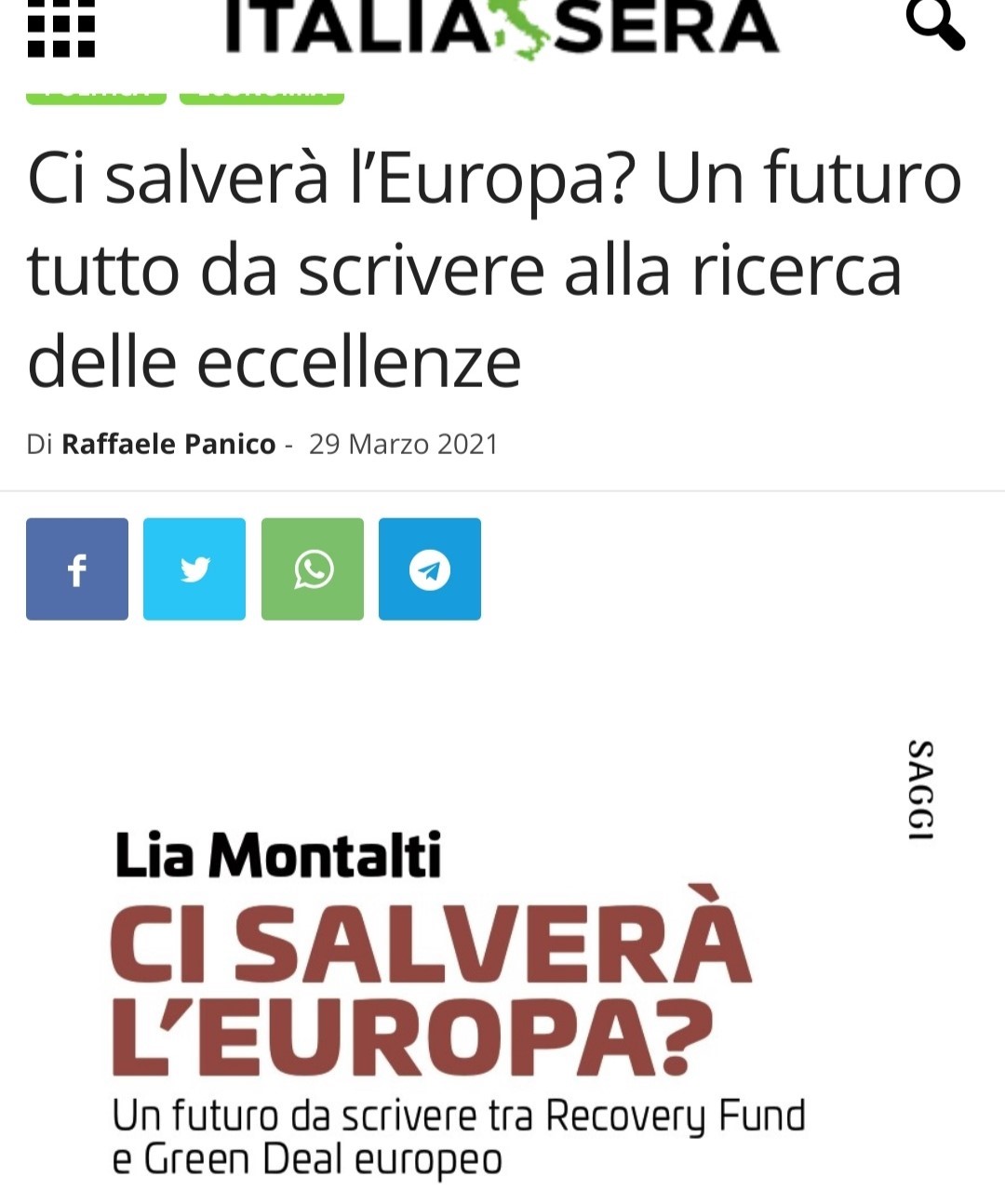 Ci salverà l’Europa? Un futuro tutto da scrivere alla ricerca delle eccellenze su Italia Sera