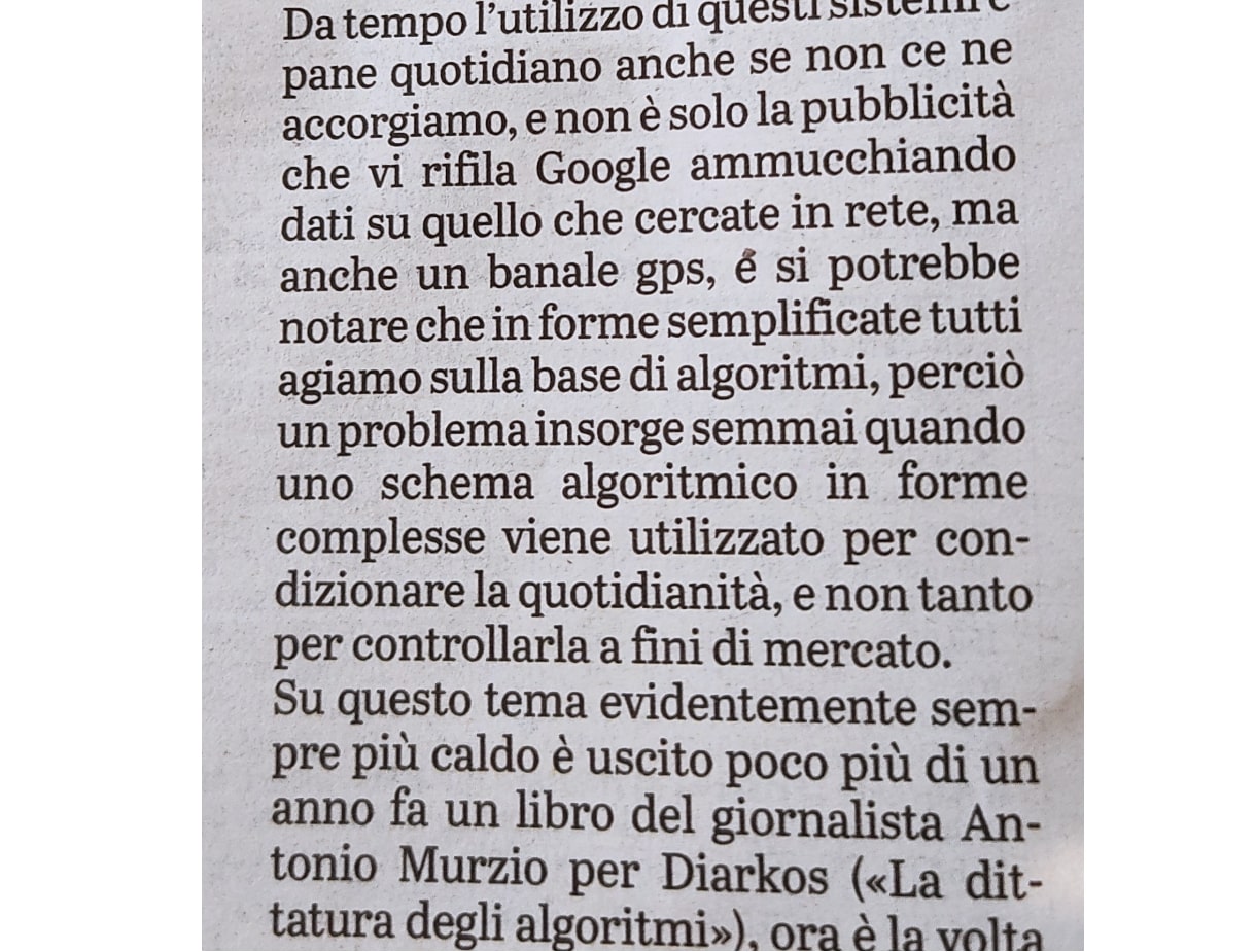 "LA DITTATURA DEGLI ALGORITMI. Il dominio della matematica nella vita quotidiana" su Gazzetta di Parma