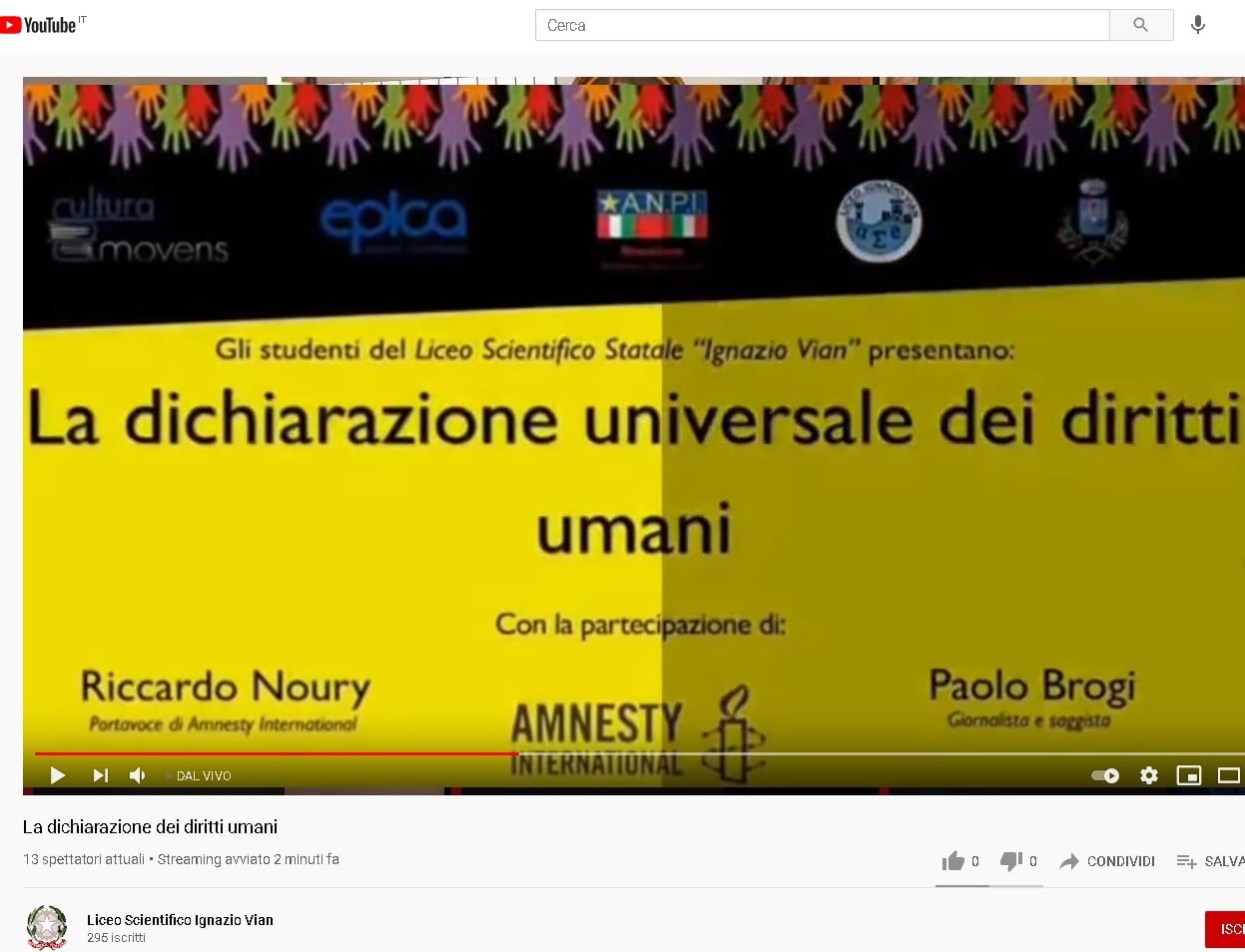 Gli studenti del Liceo Statale "Ignazio Vian" presentano "LA DICHIARAZIONE DEI DIRITTI UMANI" con Riccardo Noury, portavoce internazionale di Amnesty International e Paolo Brogi, giornalista e saggista.
