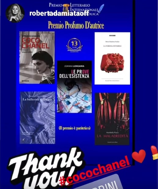 "Coco Chanel. Unica e insostituibile" di Roberta Damiata vincitore ex aequo del Premio Profumo d'autrice - Concorso Letterario Città di Cattolica