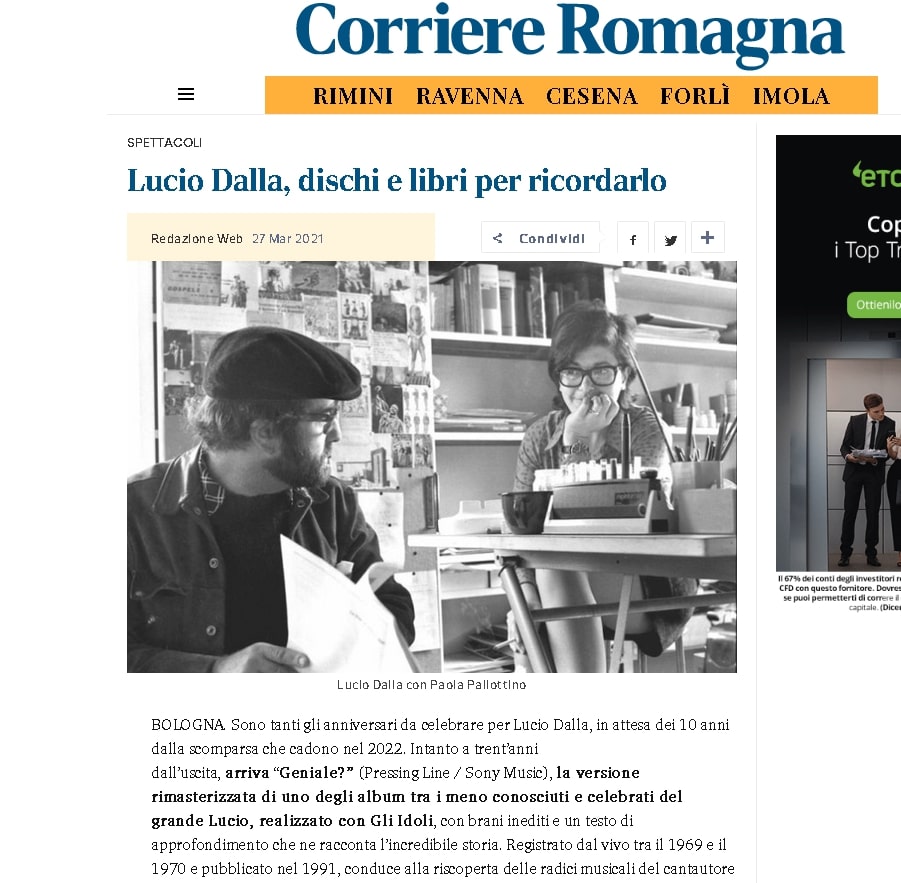 Lucio Dalla, dischi e libri per ricordarlo. Il libro di Salvatore Coccoluto su Corriere Romagna