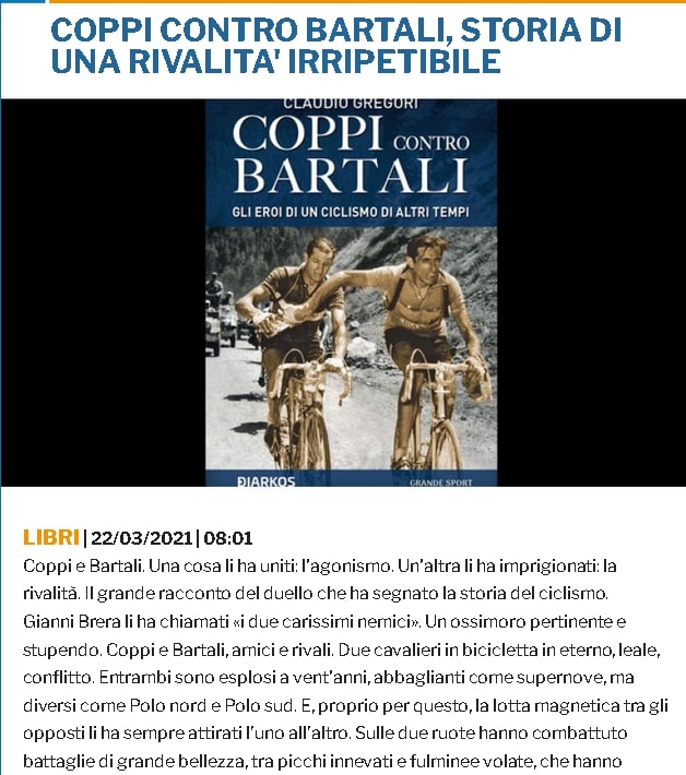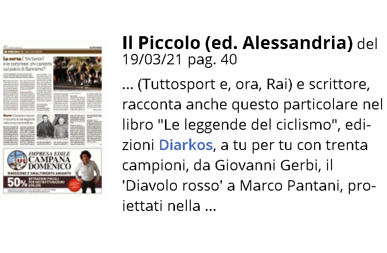 "Le leggende del ciclismo" di Beppe Conti su Il Piccolo (ed. Alessandria) del 19/03/21 pag. 40