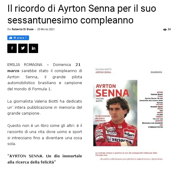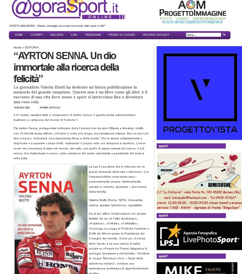“AYRTON SENNA. Un dio immortale alla ricerca della felicità” su Agora Sport Online