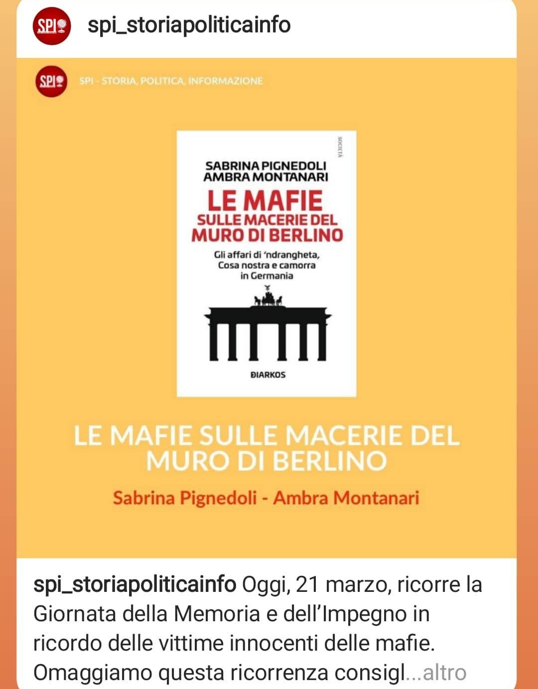 "Le mafie sulle macerie del Muro di Berlino" di Sabrina Pignedoli e Ambra Montanari su SPI - Storia, Politica, Informazione