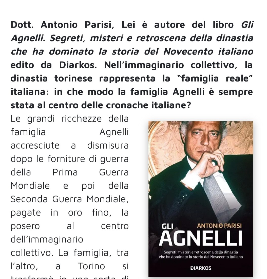 Un libro sulla "famiglia reale" d'Italia. Gli Agnelli di Antonio Parisi su Non Solo Contro