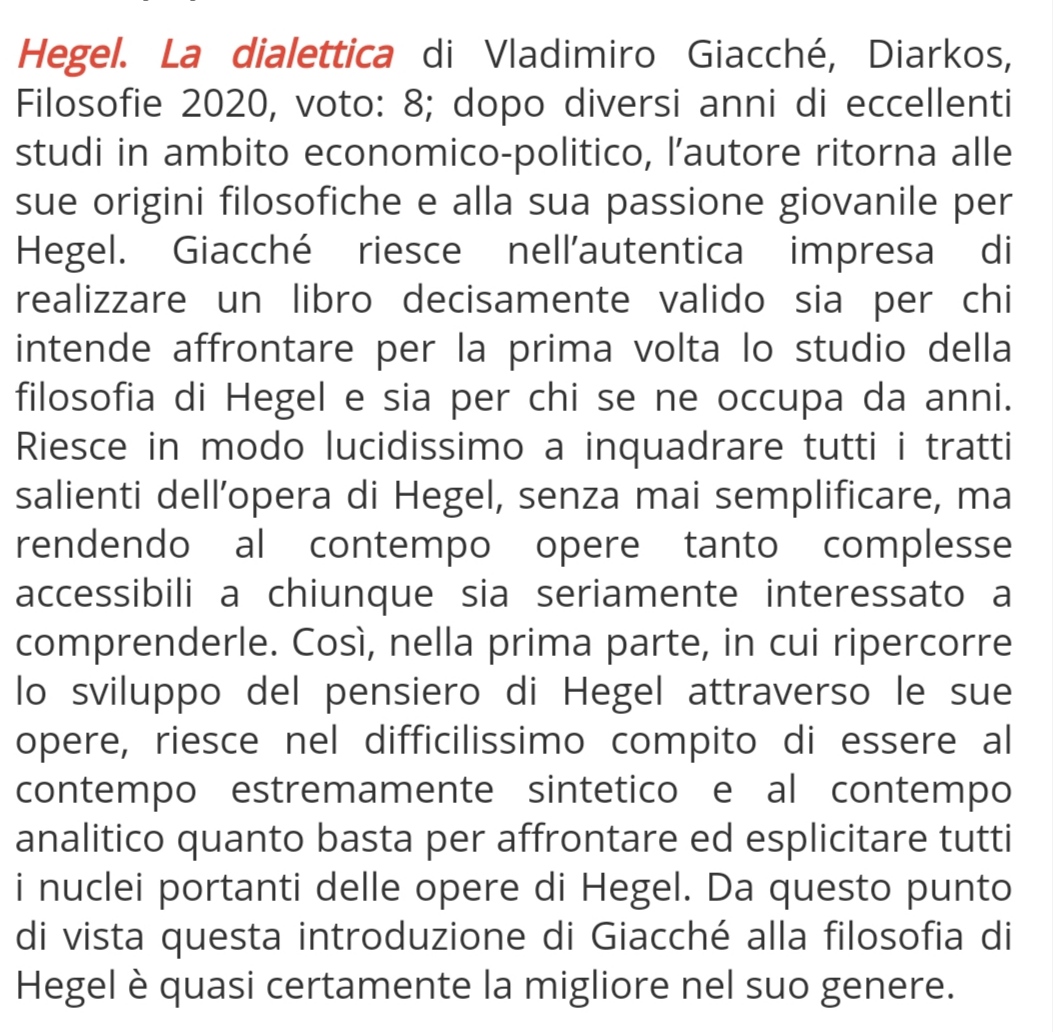 Hegel di Vladimiro Giacchè fra i Migliori film, serie e libri 2020 su La Città Futura