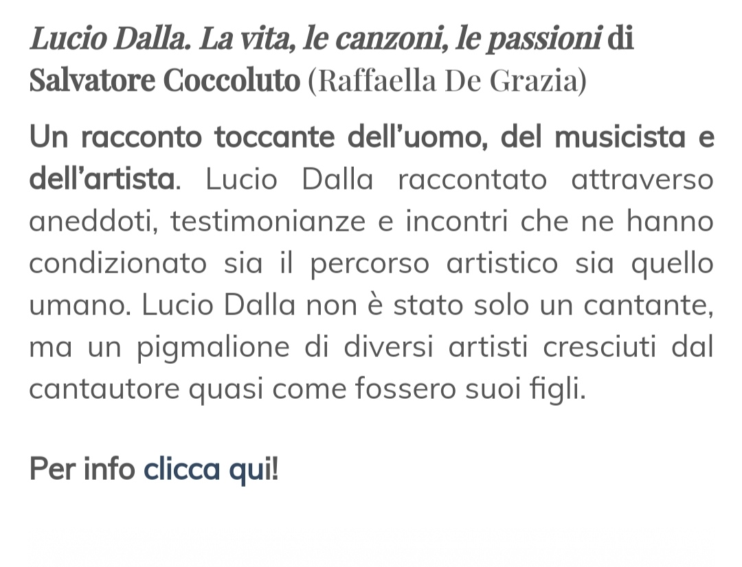 Lucio Dalla. La vita, le canzoni, le passioni di Salvatore Coccoluto recensito dalla bookblogger Elena Sperduti
