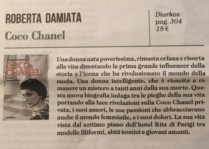 Coco Chanel di Roberta Damiata su Gazzetta di parma del 24/01/2021 a pag 25
