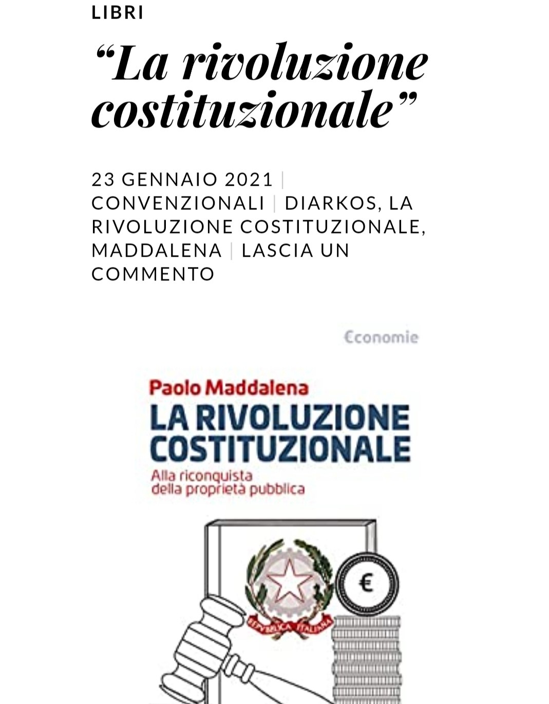 "La rivoluzione costituzionale" di Paolo Maddalena su Covnenzionali Blog