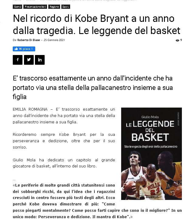 Nel ricordo di Kobe Bryant a un anno dalla tragedia. Le leggende del basket su Emilia Romagna News 24
