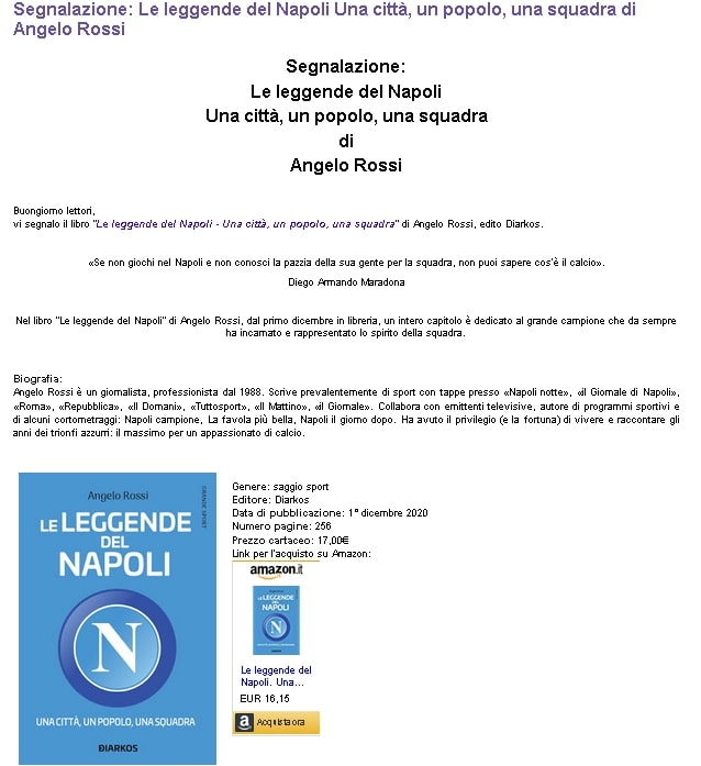 Segnalazione: Le leggende del Napoli Una città, un popolo, una squadra di Angelo Rossi sul blog Una buona Lettura