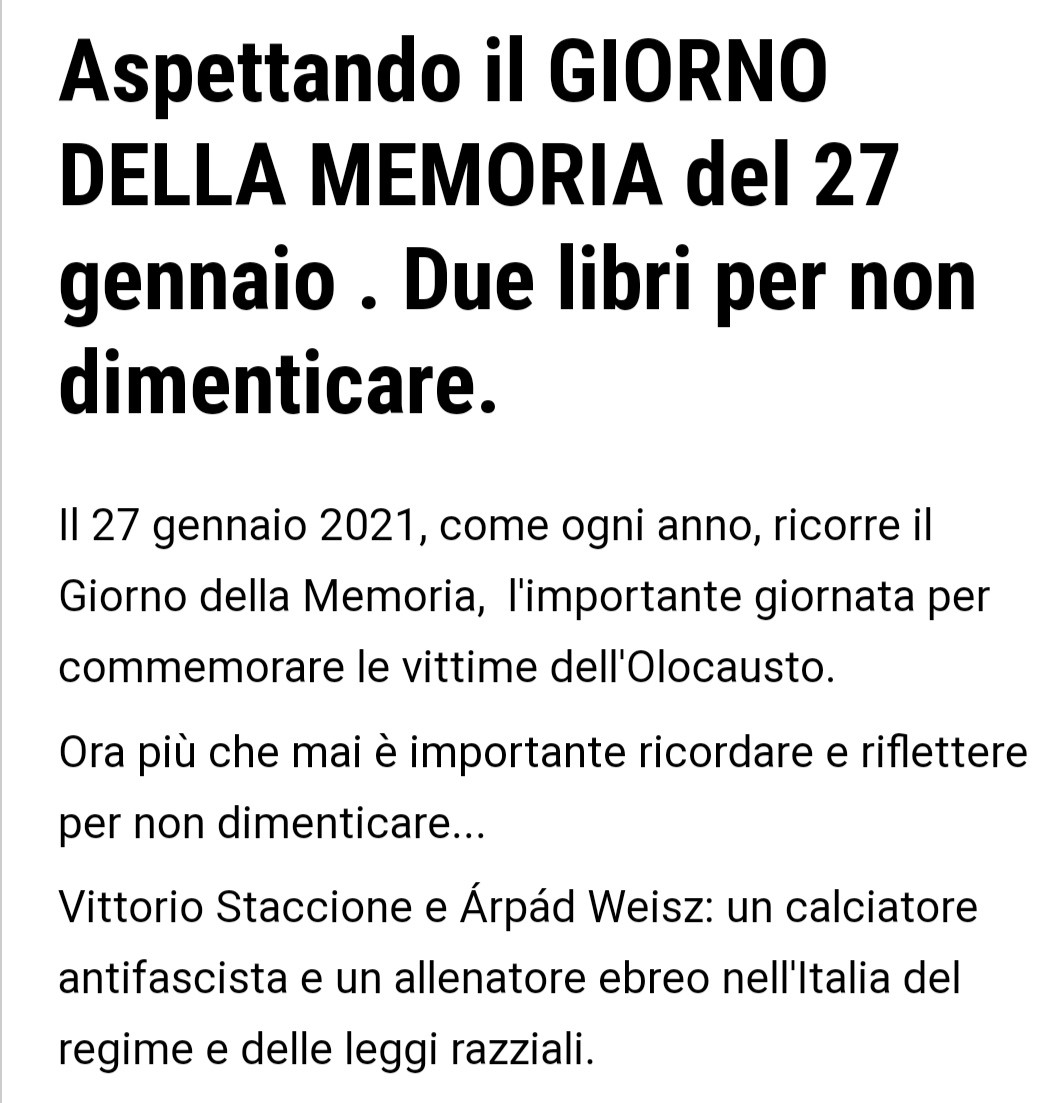 Vittorio Staccione e Árpád Weisz: un calciatore antifascista e un allenatore ebreo nell'Italia del regime e delle leggi razziali su Welfare Network