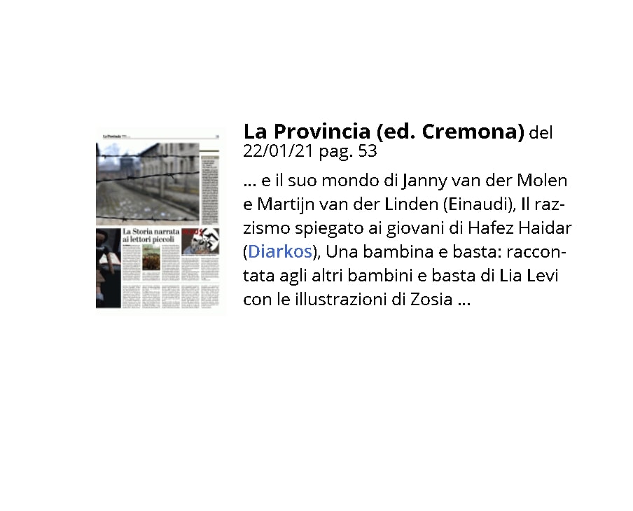 La Storia narrata ai lettori piccoli. Il razzismo spiegato ai giovani di Hafez Haidar su La Provincia (ed. Cremona) del 22/01/21 pag. 53