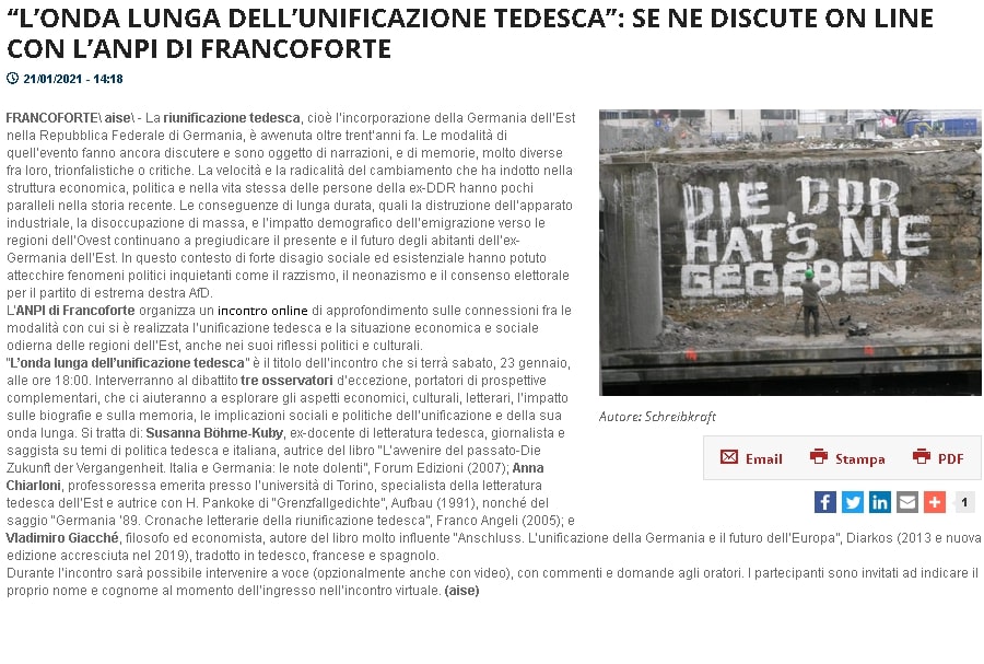 “L’ONDA LUNGA DELL’UNIFICAZIONE TEDESCA”. “Anschluss. L’unificazione della Germania e il futuro dell’Europa” di Vladimiro Giacchè su Aise.it