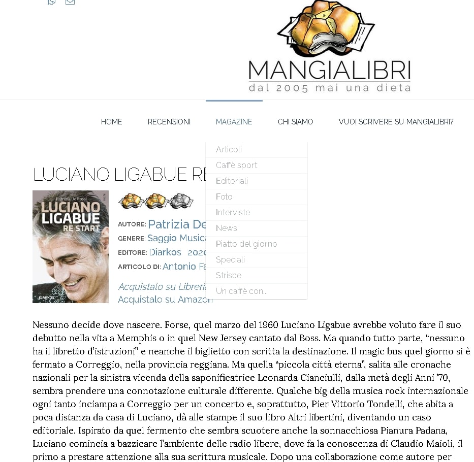 Luciano Ligabue re start di Patrizia De Rossi su Mangialibri