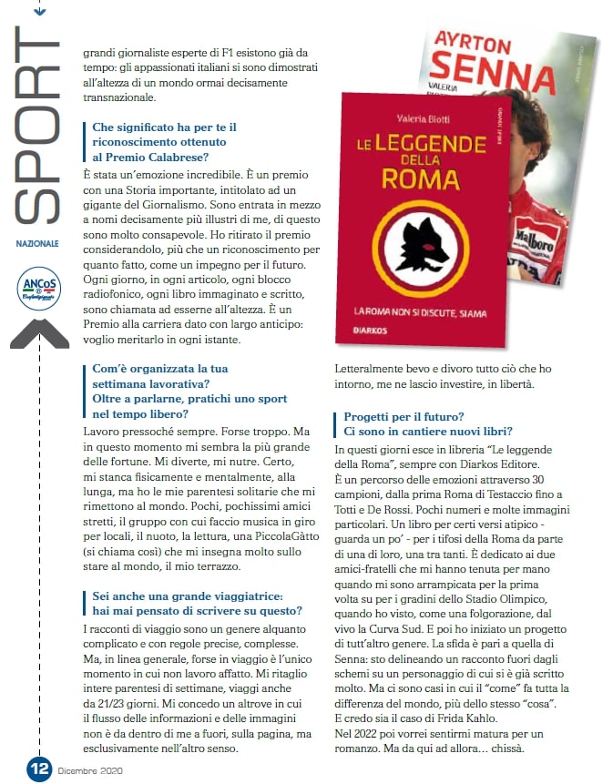 CALCIO E FORMULA 1 QUANDO A PARLARNE È UNA DONNA. Intervista a Valeria Biotti per la rivista Confartigianato - Dicembre 2020 pag. 10-11-12