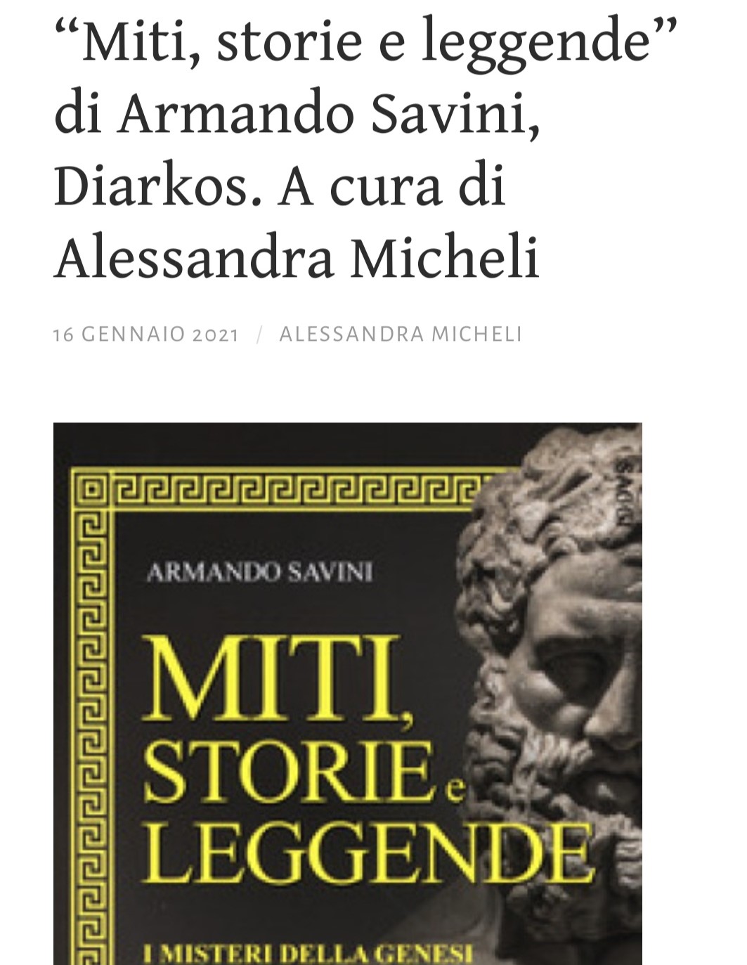 “Miti, storie e leggende” di Armando Savini, Diarkos. A cura di Alessandra Micheli sul blog Les Fleurs Du Mal