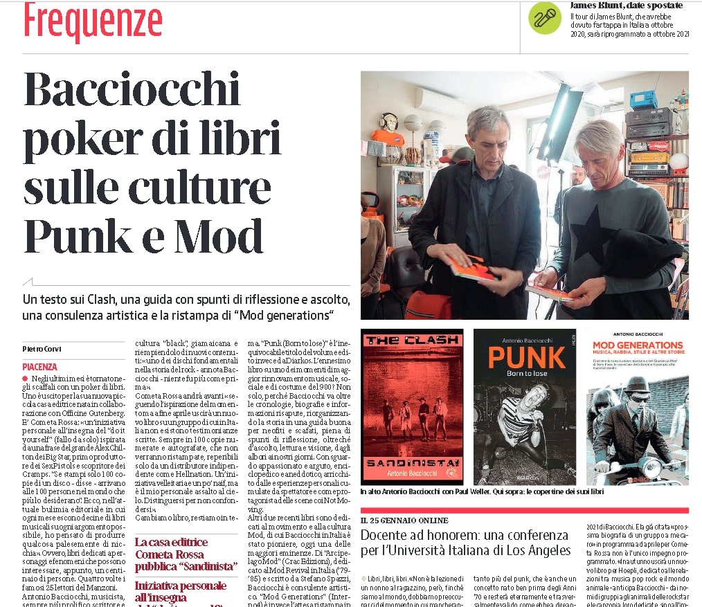 Bacciocchi poker di libri sulle culture Punk e Mod su Quotidiano Libertà del 04/01/2021 pag. 23