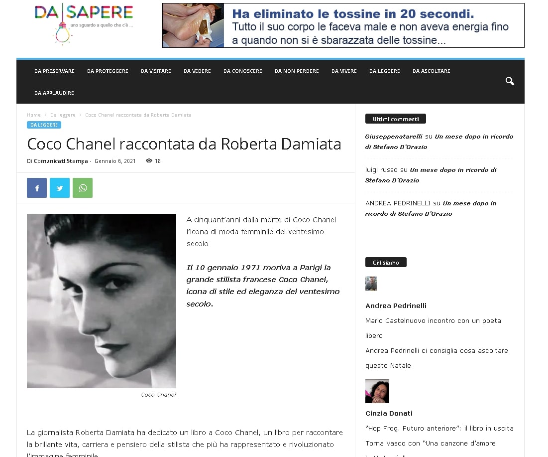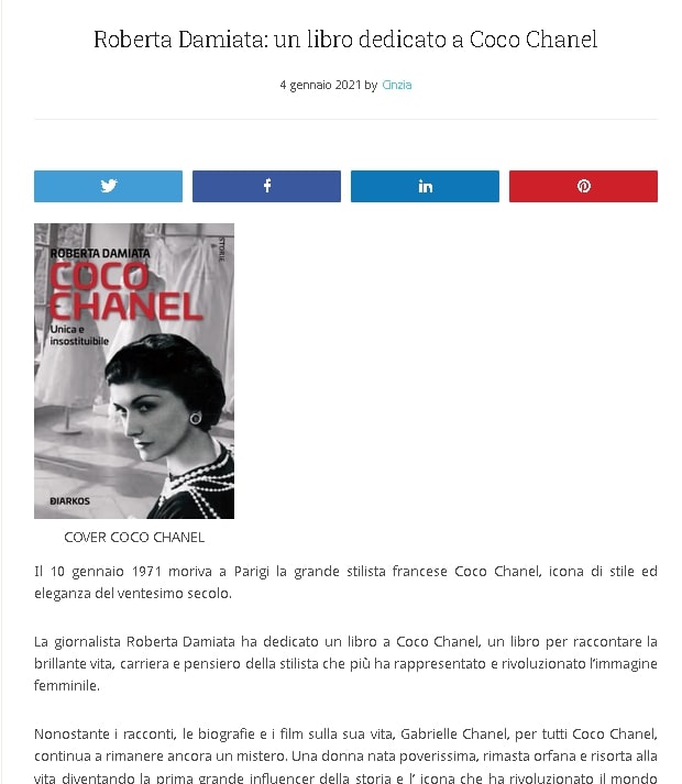 Roberta Damiata: un libro dedicato a Coco Chanel - Dietrolanotizia