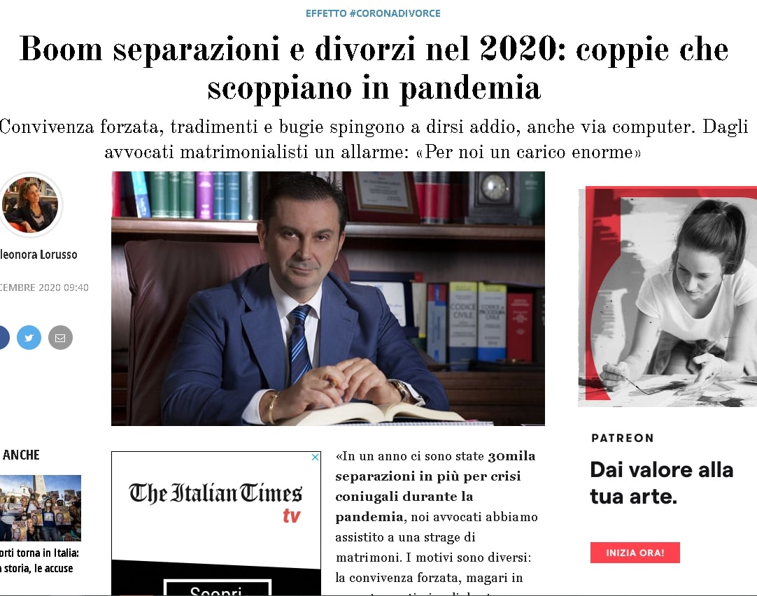 Boom separazioni e divorzi nel 2020: coppie che scoppiano in pandemia. "La guerra dei Rossi" di Gian Ettore Gassani su The Italian Times