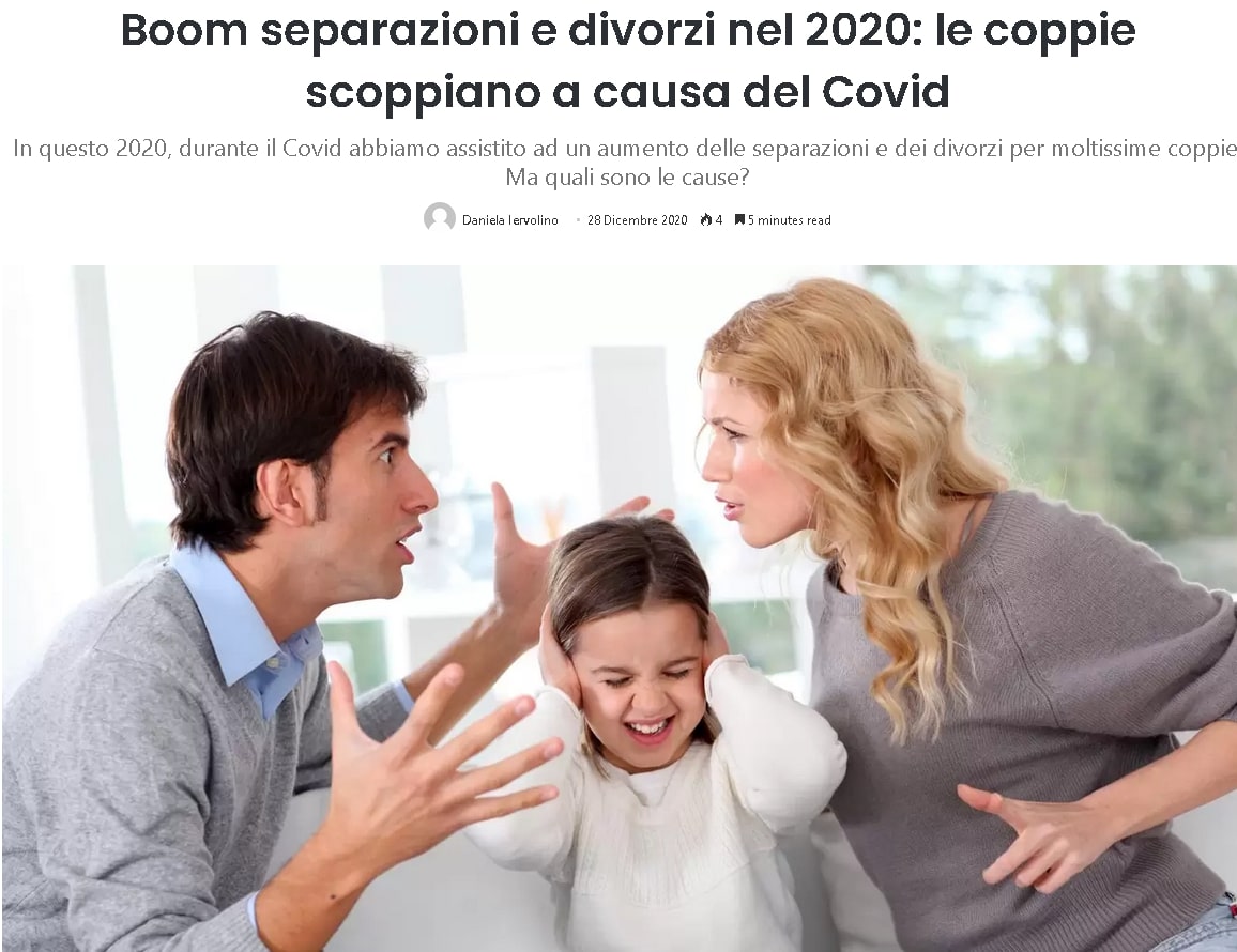 Boom separazioni e divorzi nel 2020: le coppie scoppiano a causa del Covid In questo 2020, durante il Covid abbiamo assistito ad un aumento delle separazioni e dei divorzi per moltissime coppie. Ma quali sono le cause?
